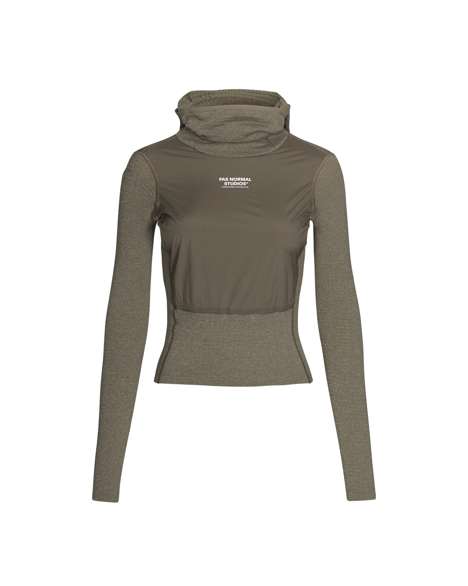 真冬のライドのための最も暖かいベースレイヤーです。フロントパネルには防風素材を使用し、頭部を保温するフード、口や鼻まで覆うことできる前襟が冷気から守ります。